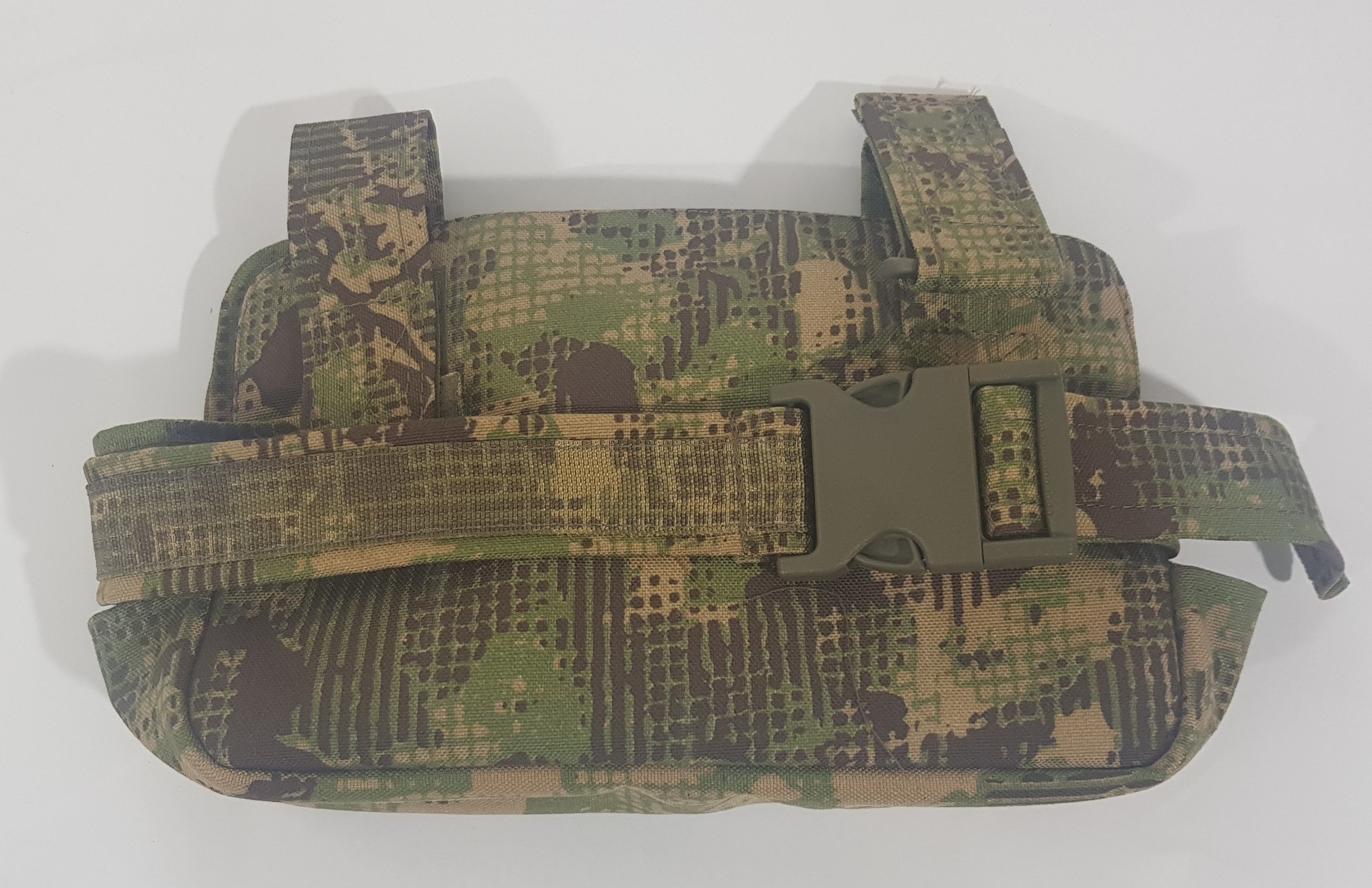 Виготовлена у вигляді підсумка на жорсткій основі з верхнім клапаном, що закривається за допомогою "велкро". Призначена для укладання елементів боєкомплекту (ВВ, СВ, б/п) або сухпайка. У верхній частині кишені вмонтована гумка для запобігання втрати елементів спорядження. Стягується і закривається за допомогою 2-х стрічок і регульованих безшумних застібок "фастекс". З боків нашиті стрічки MOLLE для монтажу додаткових малогабаритних елементів спорядження. У нижній частині розташований зливний отвір-люверс. Кріплення до поясу і інших елементів спорядження за допомогою МOLLE.